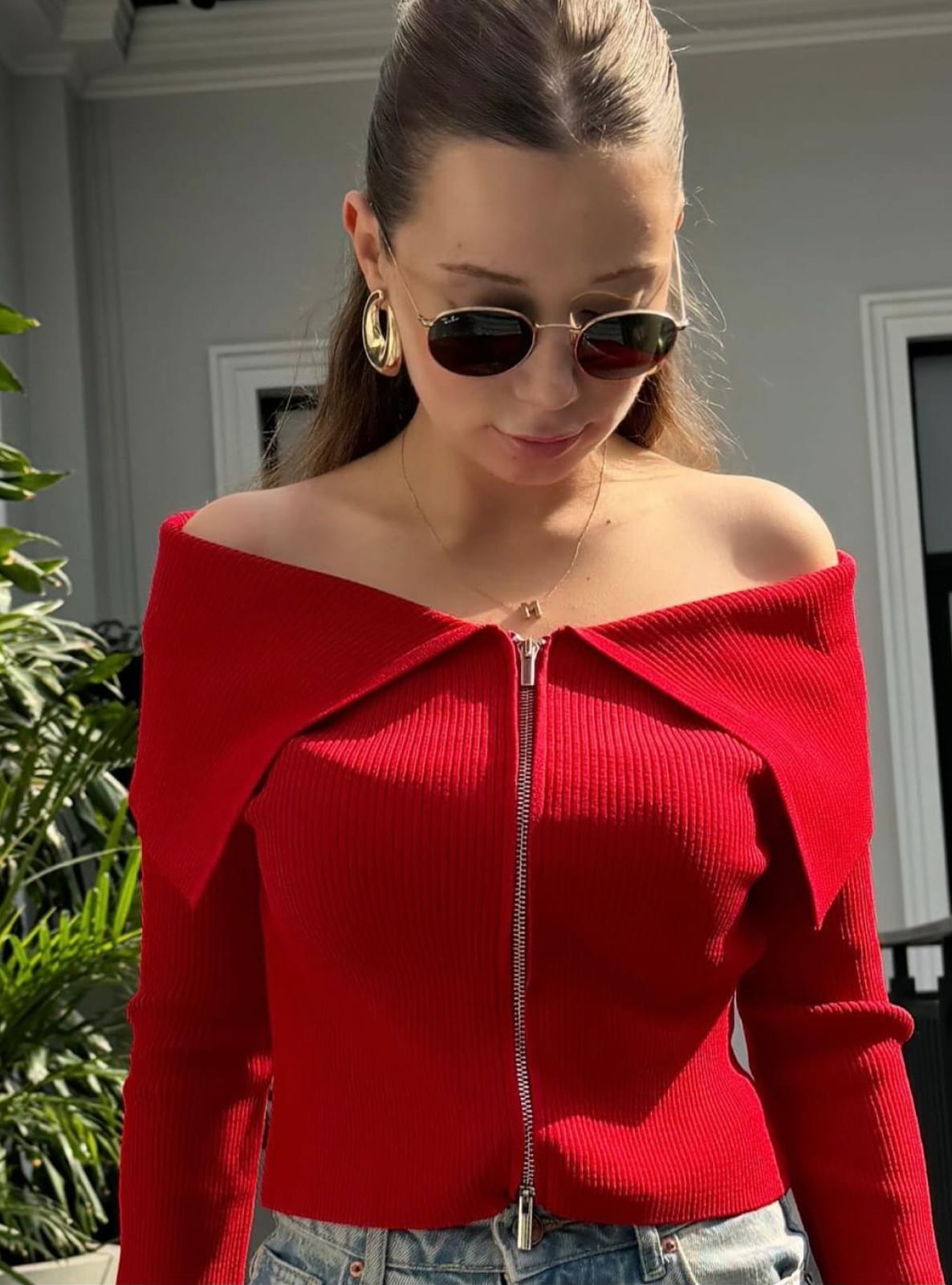 Bardot Yaka Kol Yırtmaç Detaylı Triko Hırka, zarif tasarımı ve modern detaylarıyla şıklığı bir araya getiriyor. Bardot yaka kesimiyle feminen bir dokunuş sunarken, kol yırtmaç detaylarıyla hareketlilik ve tarz katıyor. Yumuşak triko dokusu sayesinde gün boyu konfor sağlarken, hem günlük hem de özel gün kombinlerinize eşlik edebilecek bir parça.