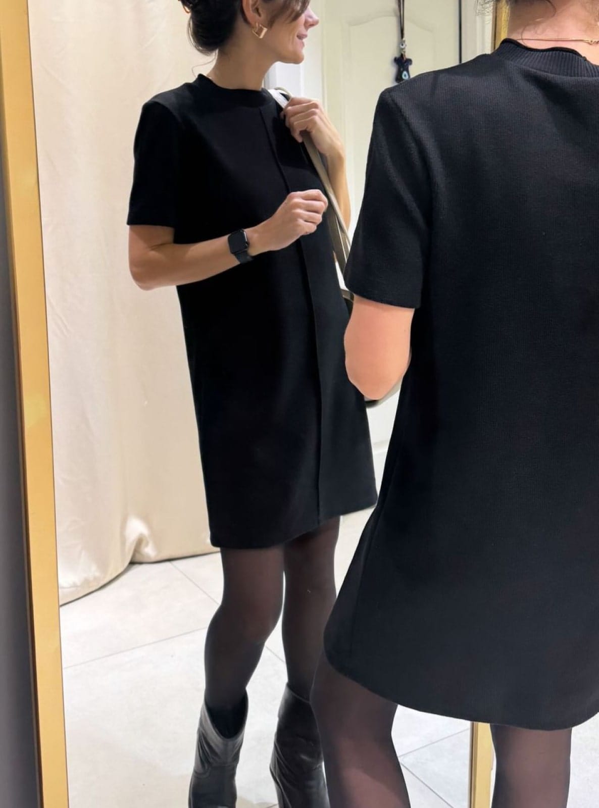 Kısa Kollu Midi Boy Siyah Elbise, gardırobunuzda çok yönlü bir parça olarak yer alacak. Yumuşak pamuk kumaşı sayesinde gün boyu rahatlık sunar. Şıklığı ve konforu bir arada sunan bu elbise, farklı aksesuarlarla kolayca kombinlenebilir.