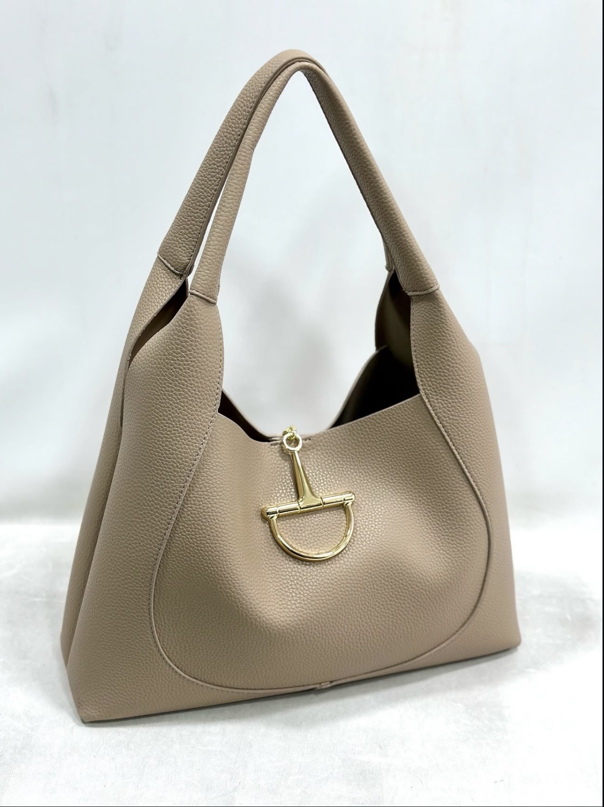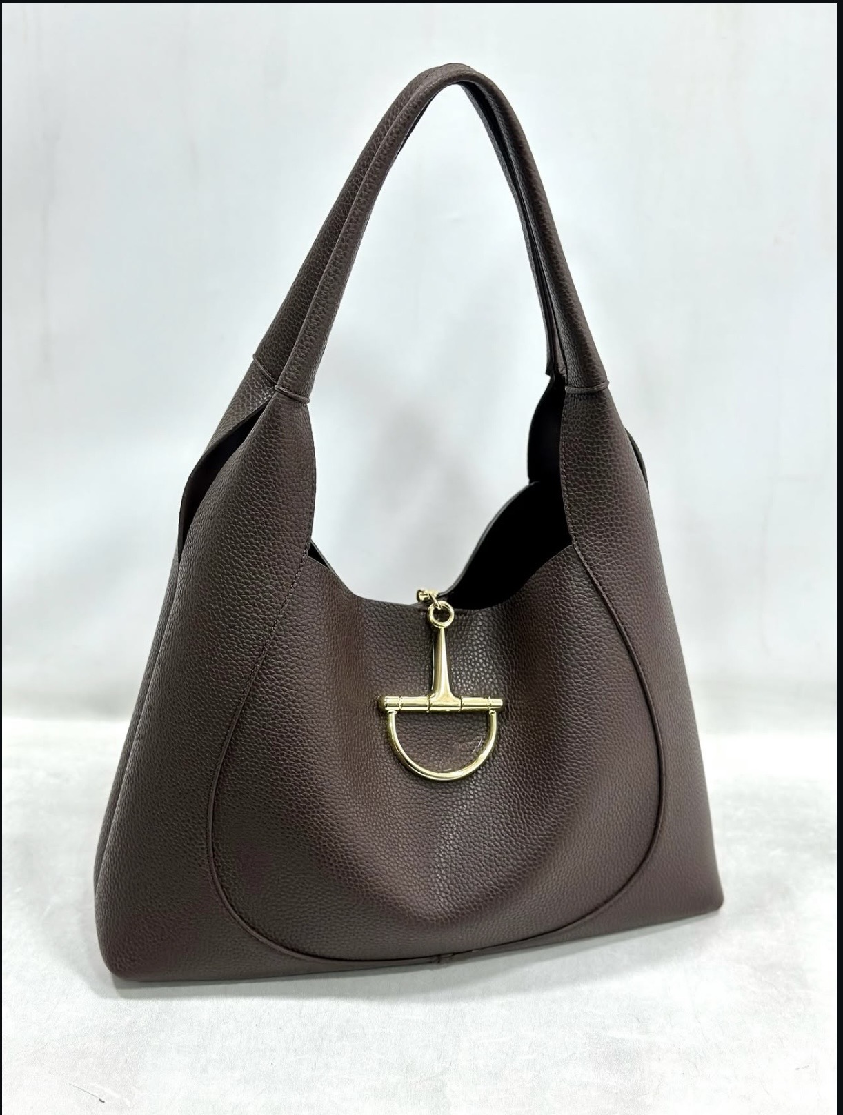 Yumuşak dokulu kahve tonu, gold detayları ve modern formuyla her kombine anında sofistike bir hava katıyor.